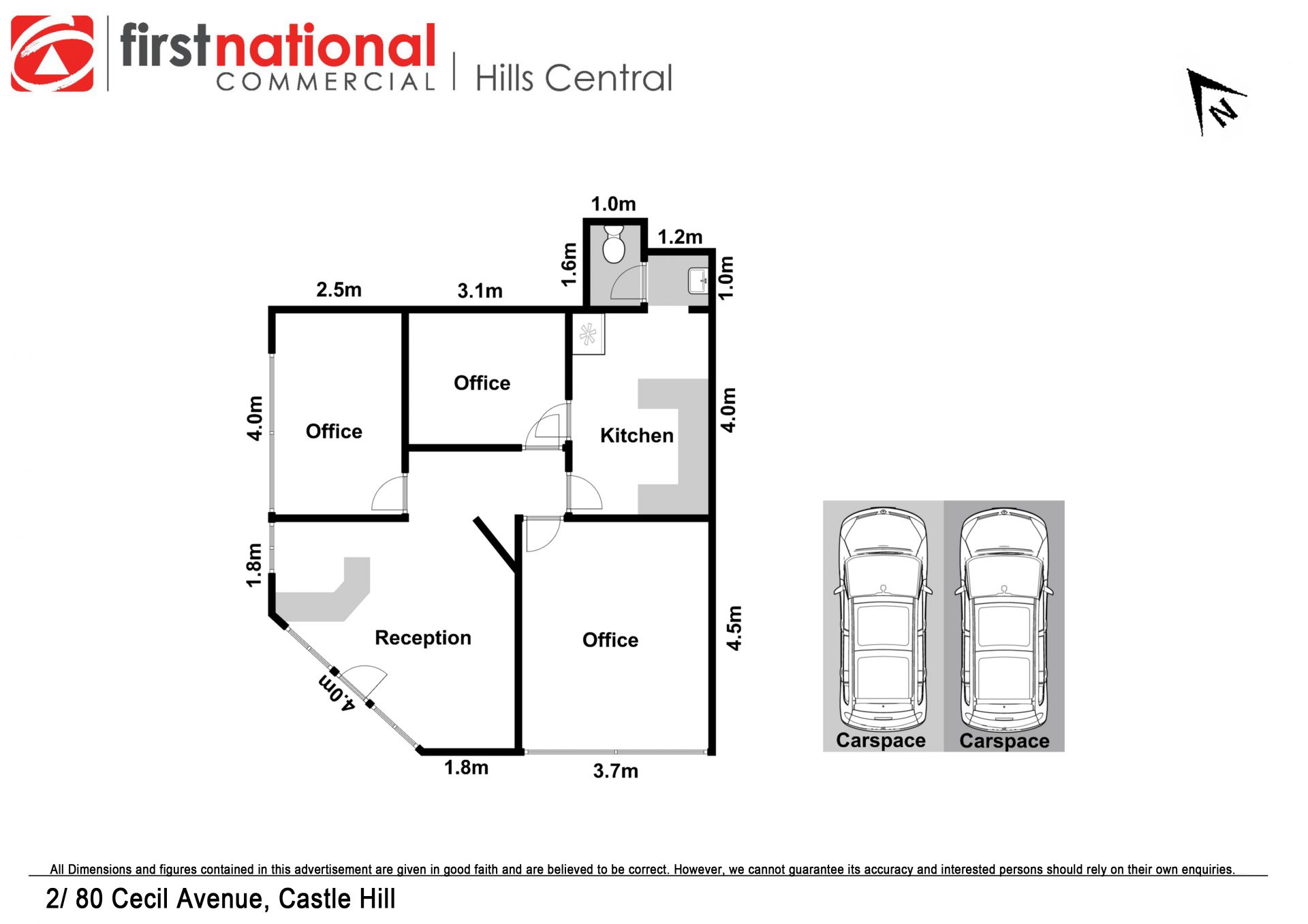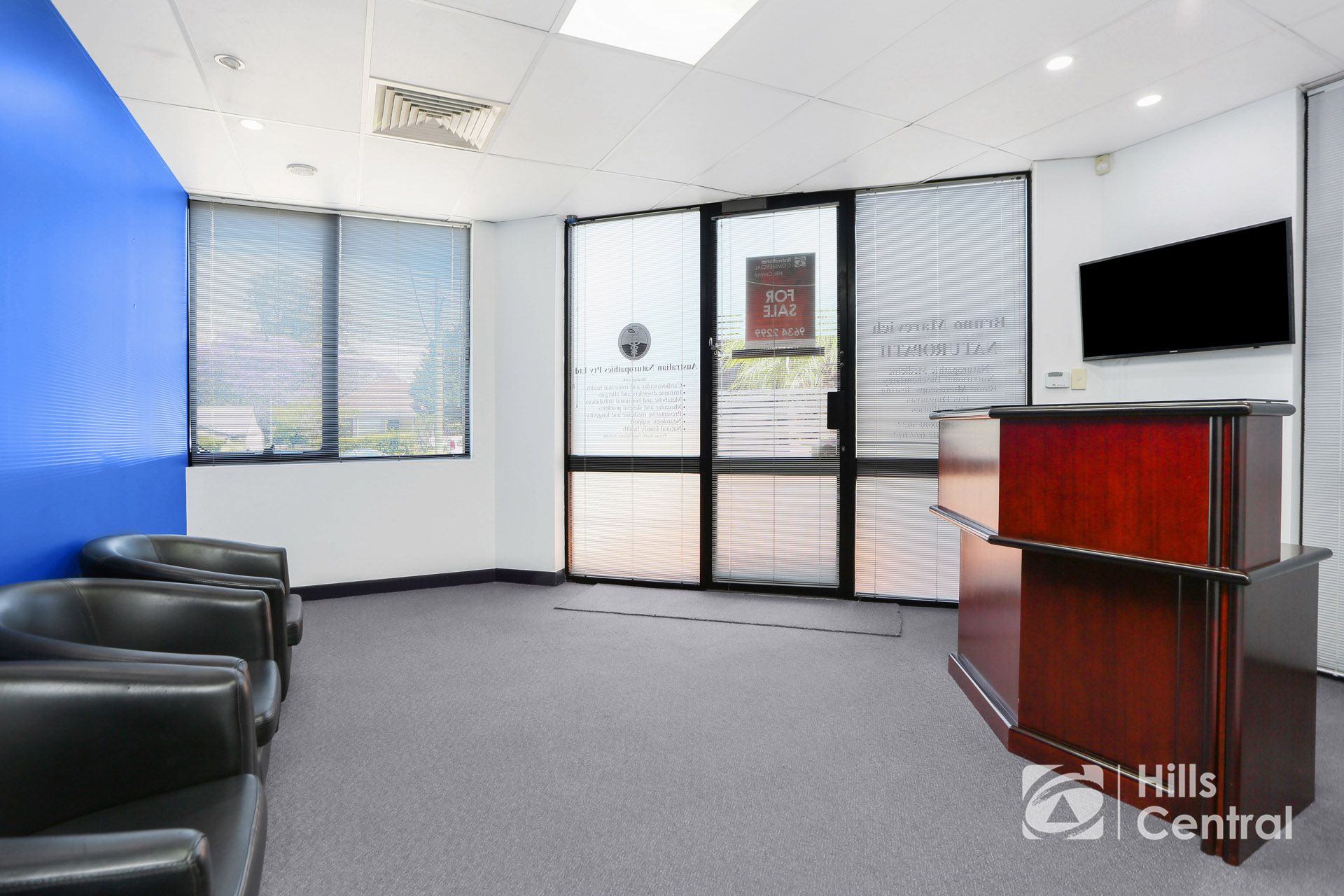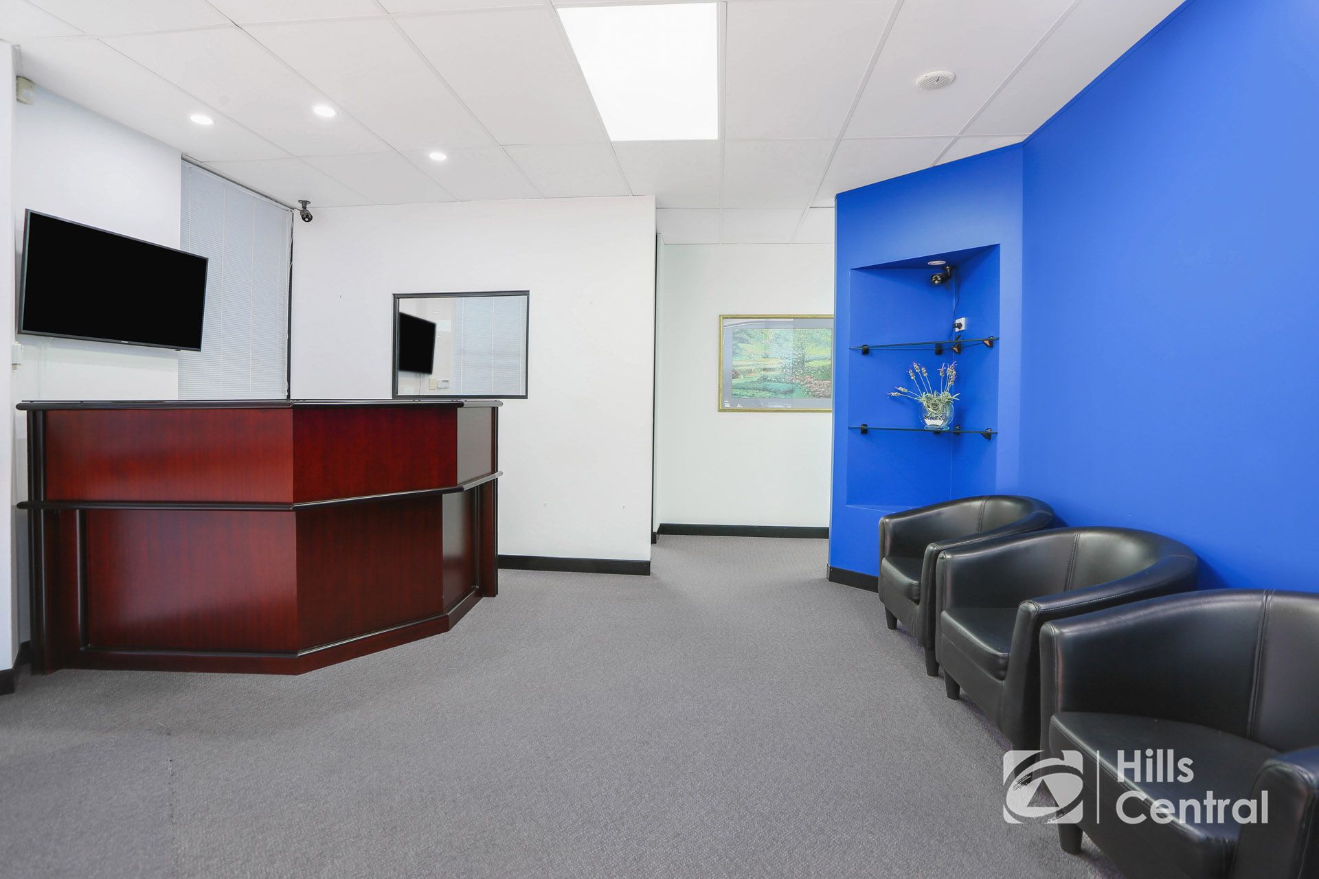 – Large reception, three office spaces plus lunchroom.