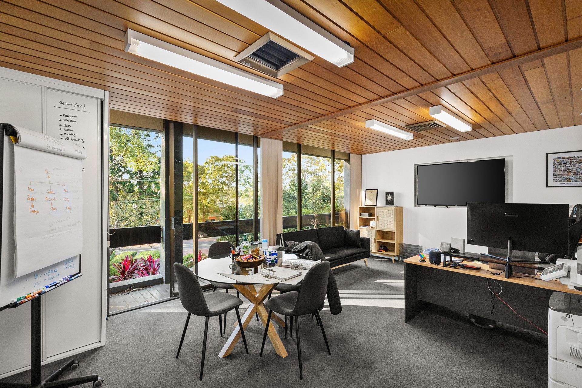 – Large reception area with three offices and a meeting room