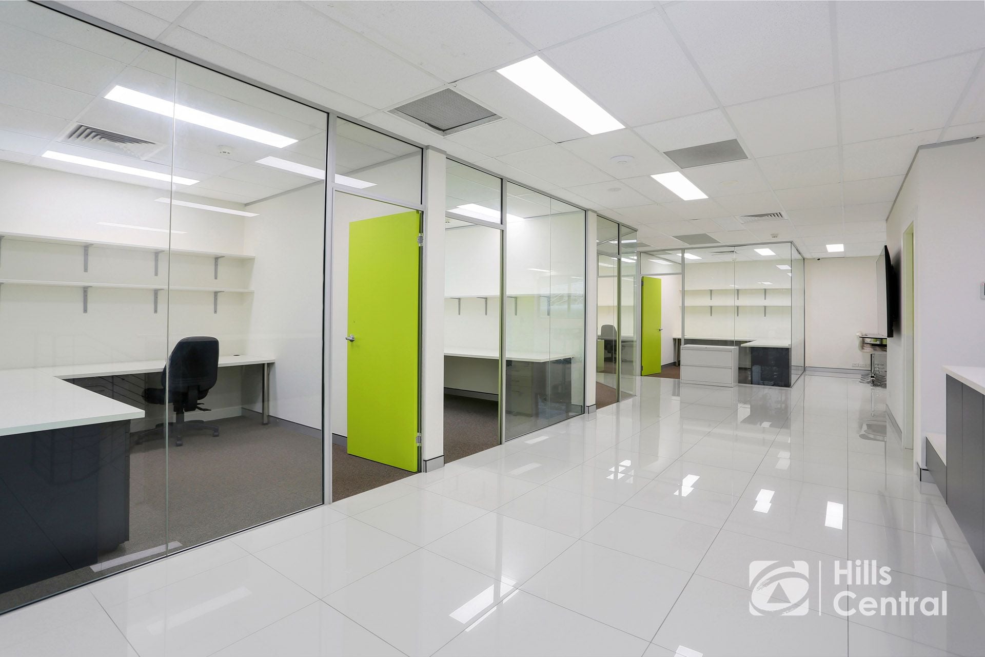 – Three (3) enclosed glass-partitioned offices on the ground floor